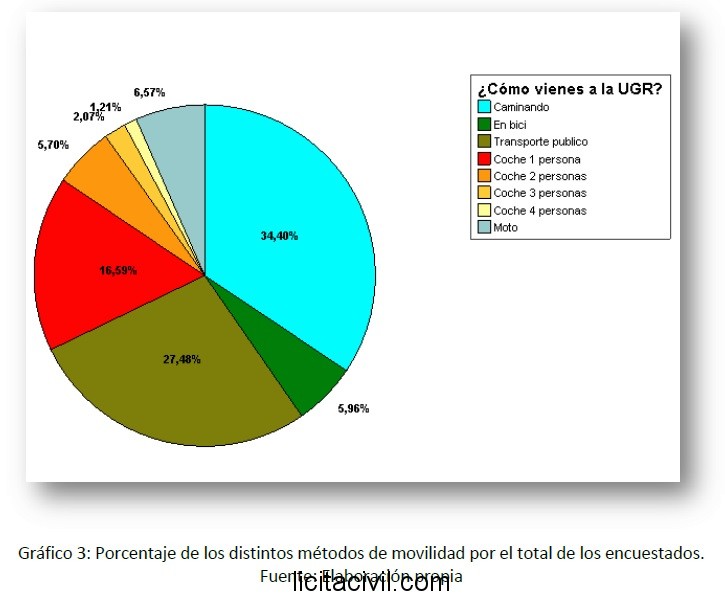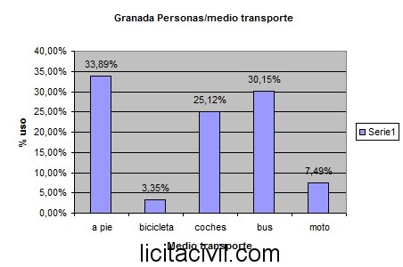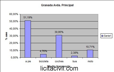 2 granada avenida principalDe este video tenemos que un 51,19% se desplaza a pie, un 30,95% en coche, un 10,71 % en moto, un 4,76% en bicicleta y un 2,38% en bus.