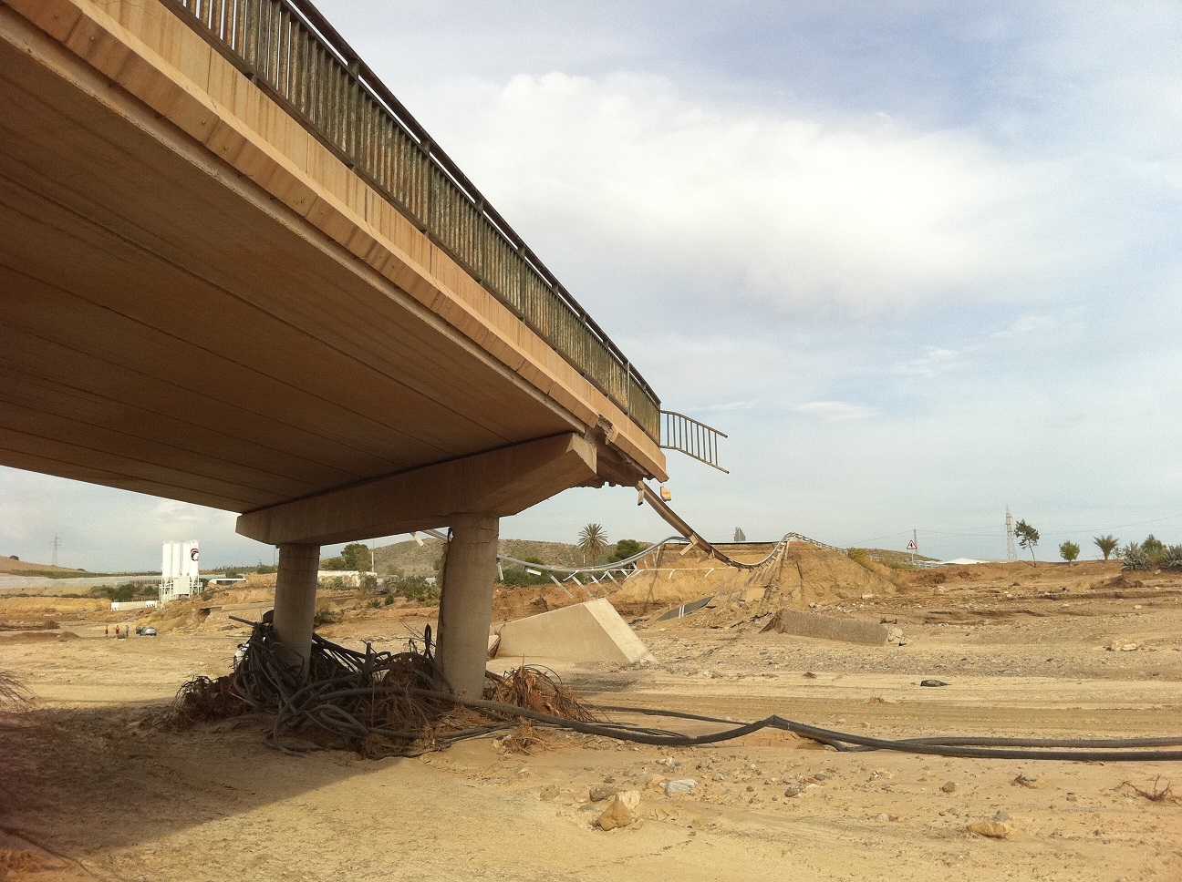 (Fotografía del puente colapsado tras las inundaciones de Septiembre 2012, Pulpí, Almería, A-350)