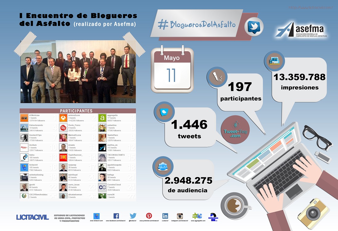 Infografía con el impacto del I Encuentro de Blogueros del Asfalto, (realizado por Asefma) #BloguerosdelAsfalto.