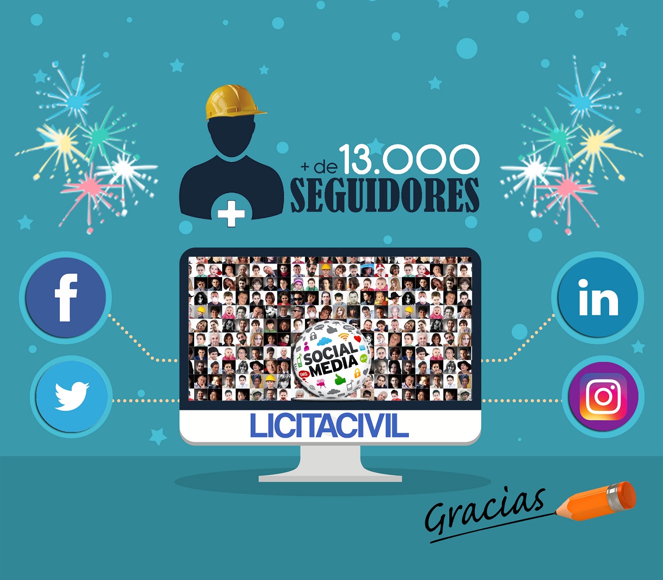 Muy buena noticia para un lunes!, Licitacivil.com ya cuenta con más de 13.000 seguidores entre las redes sociales de Facebook, Twitter, Linkedin e Instagram.