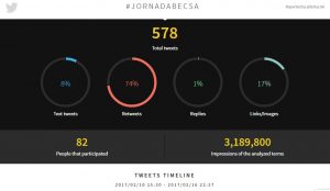 Con el hastag #JORNADABECSA, tweet binder arroja los siguiente datos acumulando los tweets de ese día, y día anterior.