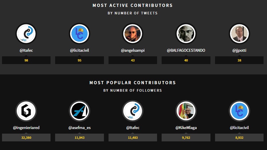 Y como cuentas más populares:  @ingenieriared, @asefma_es, @Itafec, @kikeMlaga y @licitacivil.