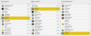 Y por último las cuentas más populares que participaron, las que generaron mayor impacto y los que hicieron un mayor número de fotografías compartidas: