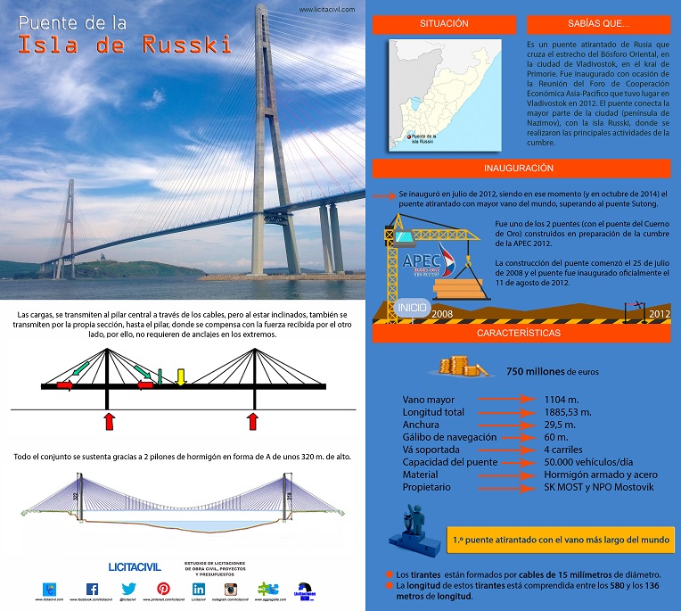 El puente conecta la mayor parte de la ciudad (península de Nazimov), con la isla de Russki, donde se realizaron las principales actividades de la cumbre.